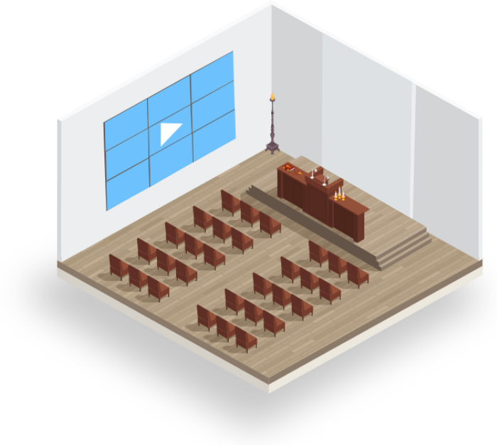 Bring sermons and events to life with indoor/outdoor video walls solution with high quality visual for house of worship.